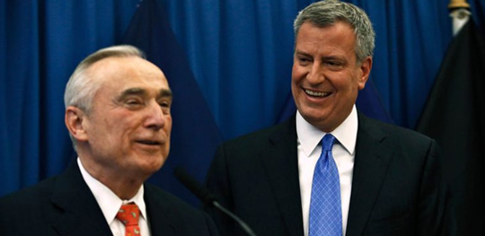 New York City Police Commissioner Bill Bratton (left) and Mayor Bill de Blasio have increased the focus of the city’s police department on getting guns off the streets.